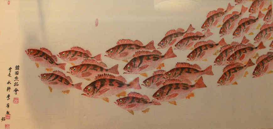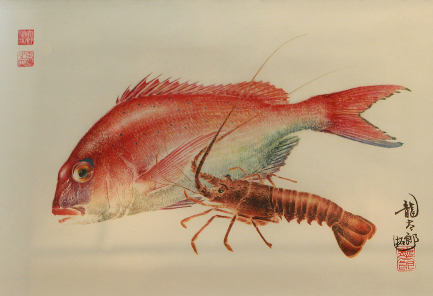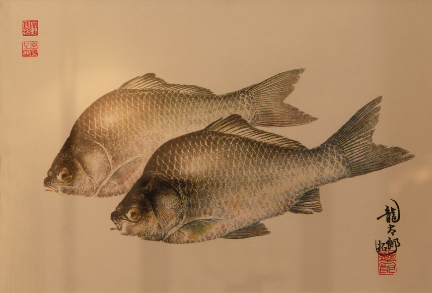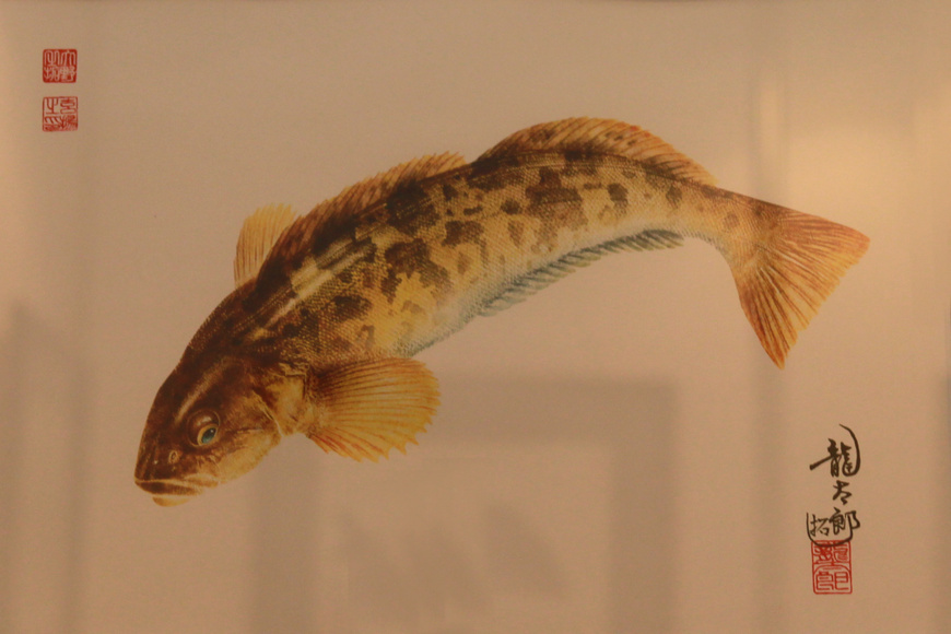 鱼拓作品上面可以描绘水草或山水,书法或题写诗词,钤盖印章,形成诗书画印的艺术品。将鱼拓作品装裱好放入镜框悬挂在家中是非常好的装饰,同时又具有纪念意义。