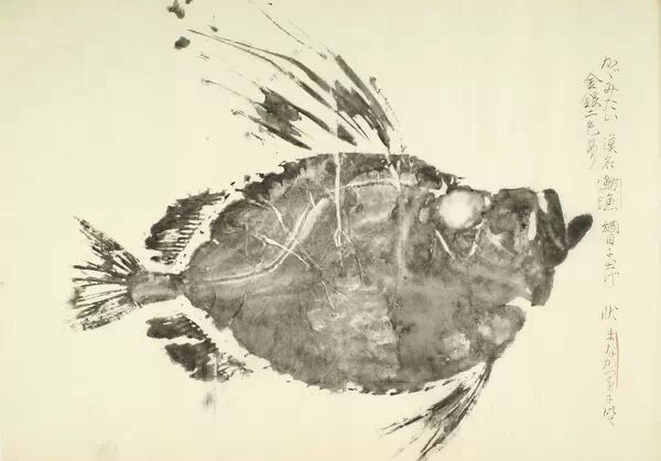 鱼拓是一种将鱼的形象用墨汁或颜料拓印到纸上的技法和艺术,起初鱼拓主要是垂钓者记录钓上的大鱼的实际尺寸,并留作纪念,后来发展成为一种艺术。