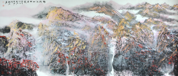 2014年6月在湖北中盛拍卖公司《锦绣河山映丹霞》拍出30万元