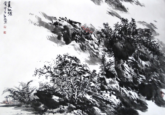 更为重要的是,在用墨与设色之间还相得益彰。作品不仅显得空灵、超逸,还不乏生动的气韵与景致。