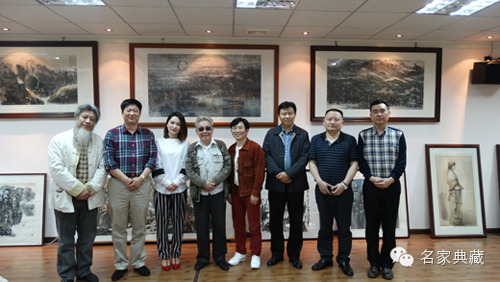 ▲ 2014年4月丁竹君老师、湖北省美协顾问张善平先生在名家典藏艺术馆和各位朋友合影留念