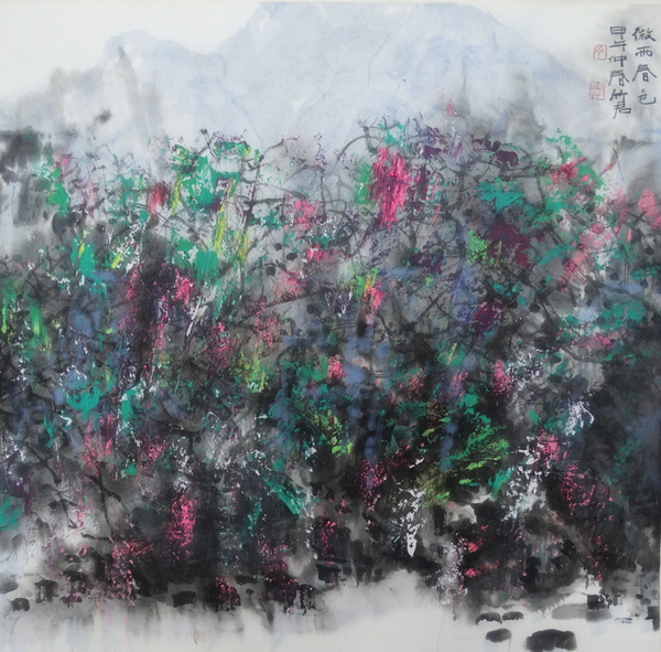 ▲ 丁竹君 微雨春色 68×68cm
