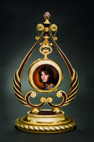 百达翡丽935型号黄金双轮双置大小自鸣三问万年历追针计时表,备月相显示,双面均绘有珐琅