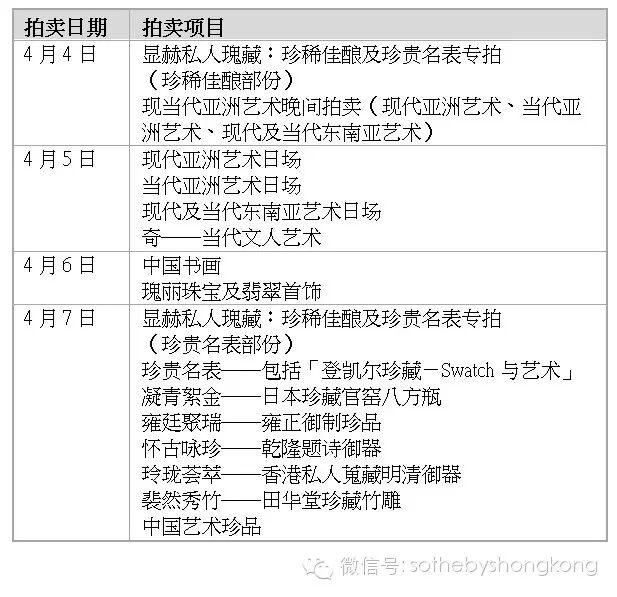 香港蘇富比2015年春季拍卖会北京预展将于3月7及8日(周六及周日)在北京国贸大酒店 3 楼群贤宴会厅C举行,届时将展出中国艺术品、中国书画、现代亚洲艺术、当代亚洲艺术、当代水墨及艺珍、珠宝钟表的亮点拍品。蘇富比各部门的专家将会在现场解答阁下之问题,并能提供切合您收藏需要之意见。期待大家踊跃参与!