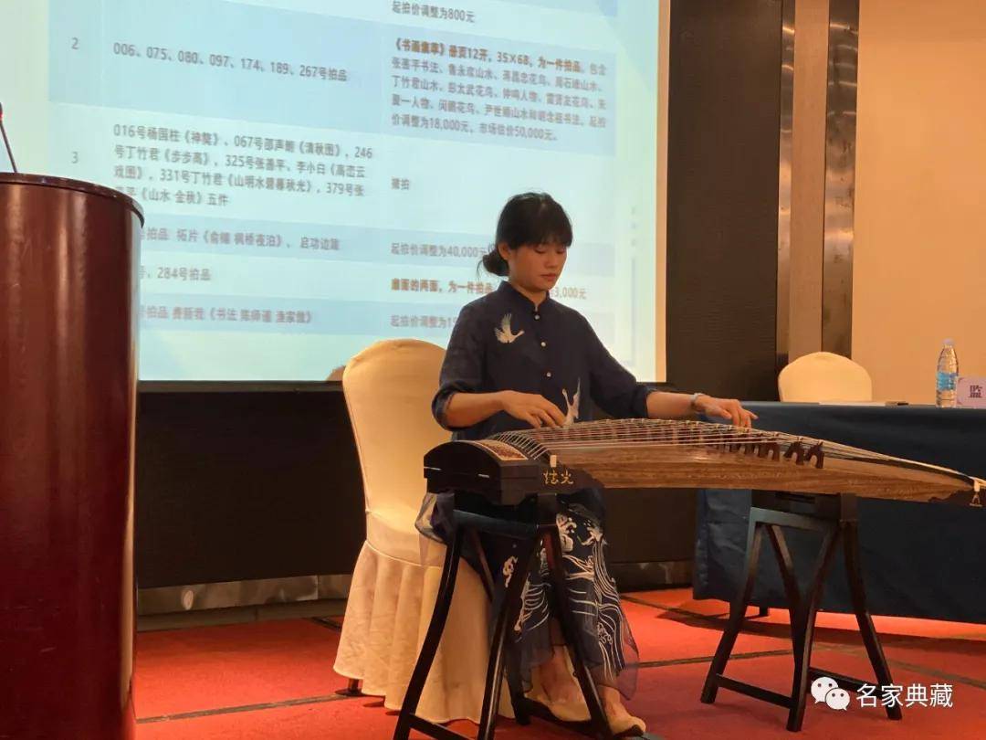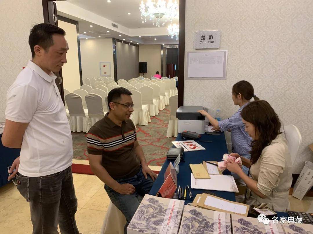 下午2点,拍卖会正式开始,首先由拍卖师贺晶晶女士宣读竞买规则,武汉一位藏家慕名而来,带来了他的藏品、中国国学大师、著名国画大师范曾先生的《八仙图》,并在现场进行了展示。紧接着,拍卖会正式开始,419件拍品次第登场。