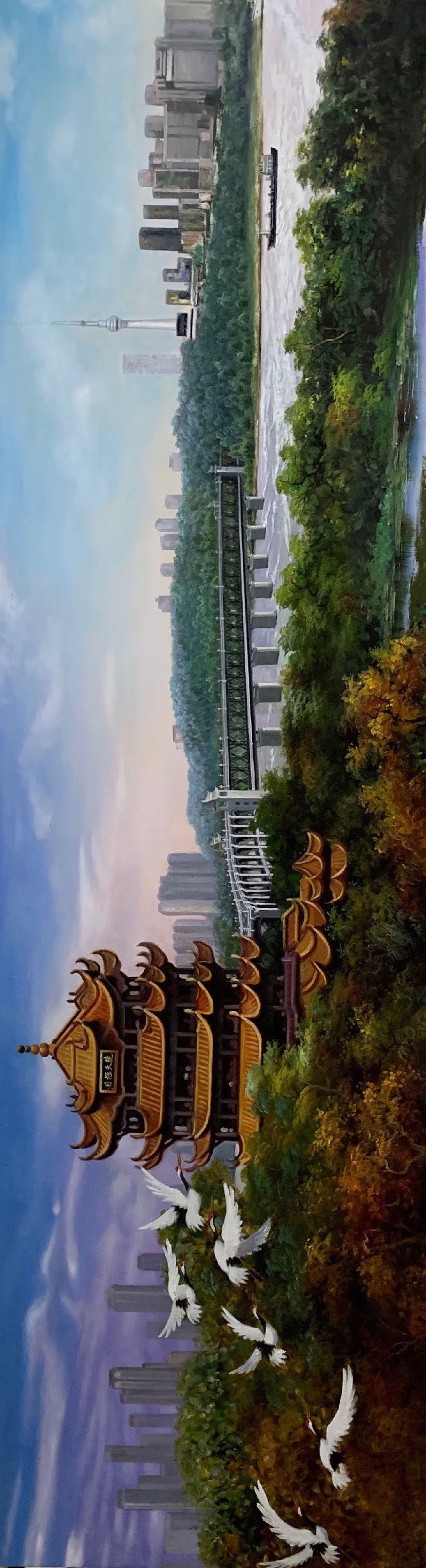 向斌的另一幅作品《黄鹤归来》,曾在军运会期间以献礼作品在主媒体中心展出,作品以88万元落槌成交,加上佣金接近100万元,创造了近期武汉画家作品新的拍卖纪录。