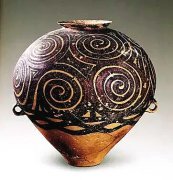 此瓮体型硕大圆满,纹饰壮观,被誉为彩陶王。其表面彩绘在黑线中套以红色,如河水漩涡一般相互连环,水涡之下为起伏的波浪。这体现了先民对水的依赖和对水神的敬畏,也似乎暗示这大瓮是用来盛水的,究其容量,当在百升以上。 这是两只在印尼海域沉船中打捞出...