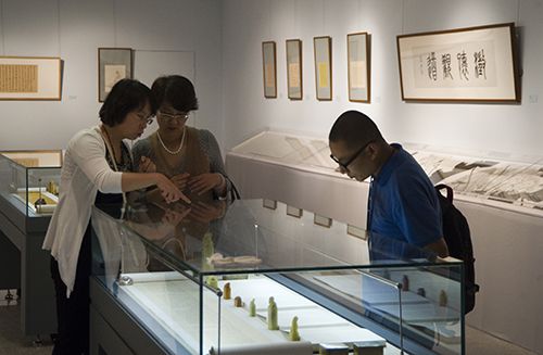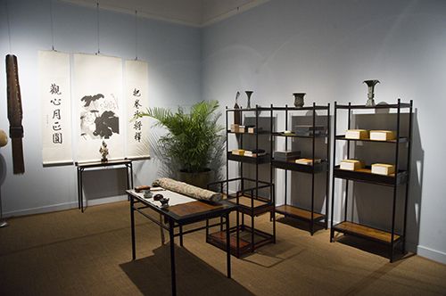 在作品欣赏区以外,展厅设置有中国传统生活艺术的情景体验区,观众可徉徜于古意盎然的书斋、茶室空间,感受中国古代生活智慧,现实体验“焚香煮茗、赏画听琴”的闲情雅趣。另有一批禅意书画小品,片笺尺素,文摘词抄,皆尽精妙,使观众感知“信手拈来皆为道”的中国先贤哲思和文人情趣。