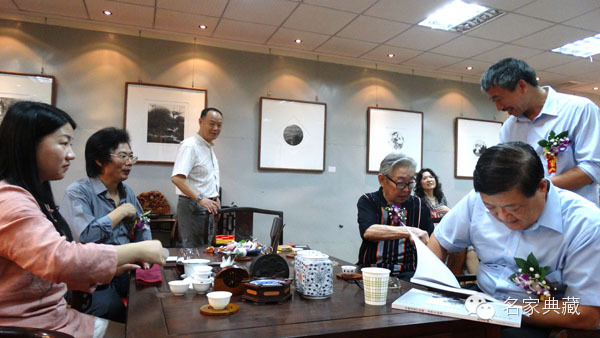 张善平主席、韩忠学院长、陈迪和院长等在一起品茗论画