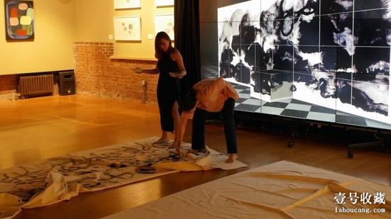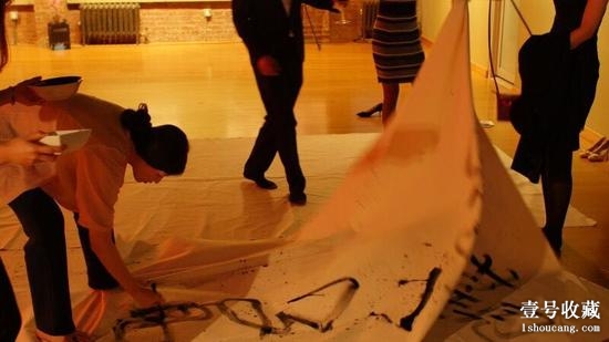 在开幕式期间,戴莹还当场进行了一次行为艺术的表演。五米多长的画布平铺在地板上,戴莹赤足站在画布上书写心经。在书写期间来宾可以通过各种方式上前干扰她的创作。然而不论面对怎样形式的干扰,戴莹都能处之泰然,心静如水的完成创作。艺术家戴莹通过这样的一种行为方式更深层次地表达出人与环境相处和对抗的关系。