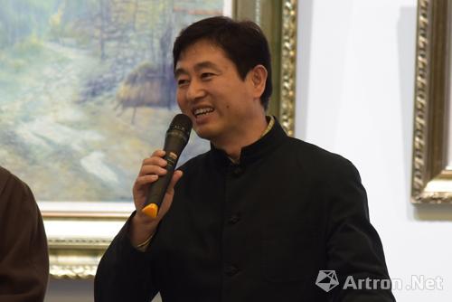 方圆美术馆馆长贾新伟主持展览开幕式、介绍到场的领导嘉宾并介绍展览初衷