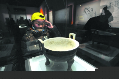 对于观众倍感兴趣的“芈”字青铜鼎,省博工作人员介绍,“芈”姓作为中国古老的姓氏之一,是春秋时期楚国祖先的族姓。据《史记·十·楚世家》记载:“芈姓,楚其后也……”《芈月传》中,主角芈月的历史原型芈八子,是楚、秦联姻嫁到秦国的楚国女子,后成为著名的秦宣太后。此次展出的“曾侯作季汤芈鼎”于2002年在枣阳郭家庙墓区出土,是古时的一种食器,形状敞口、翻沿、附耳、圆底、蹄足,上腹部饰窃曲纹,腹内壁三行10字铭文:“曾侯作季汤芈媵其永用”。
