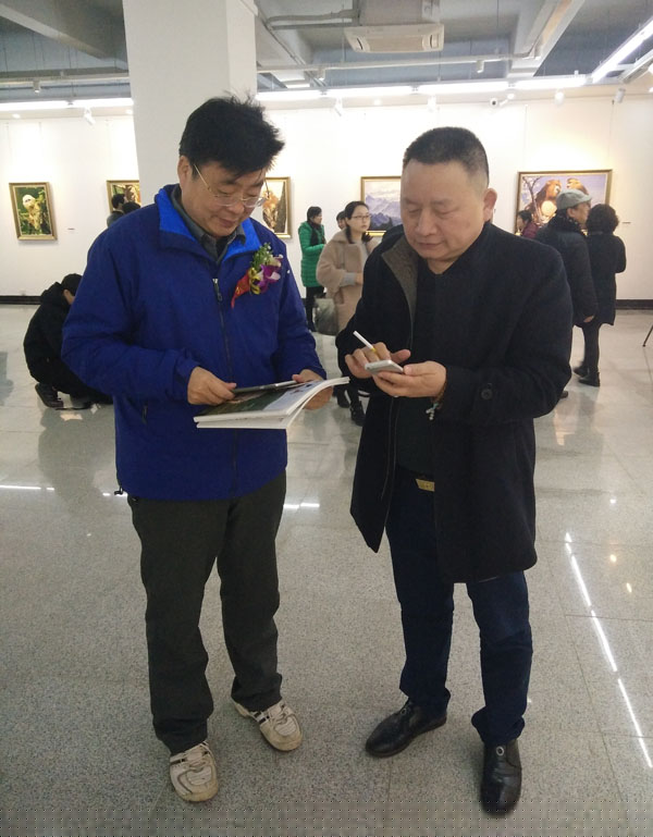 名家典藏艺术机构总裁郭建带领省文联《名家典藏》杂志编辑部成员参加了这两次新春画展,同时,郭总和艺术家及有关领导进行了学术交流、艺术探讨。