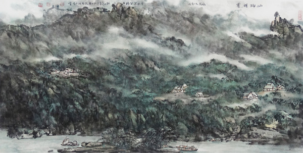 张善平主席国画作品《山乡晓雾》(名家典藏馆藏)
