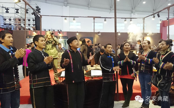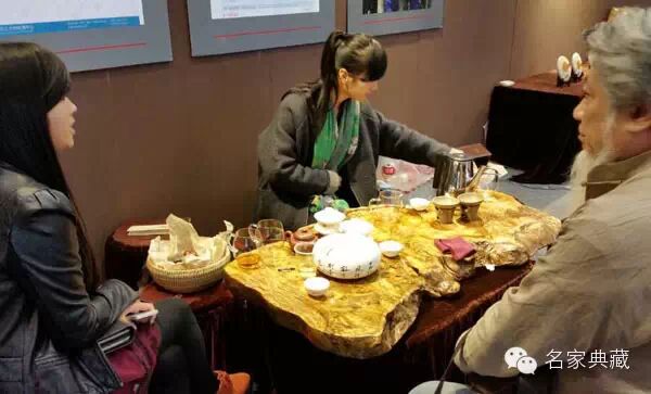 著名画家丁竹君在展会现场茗茶