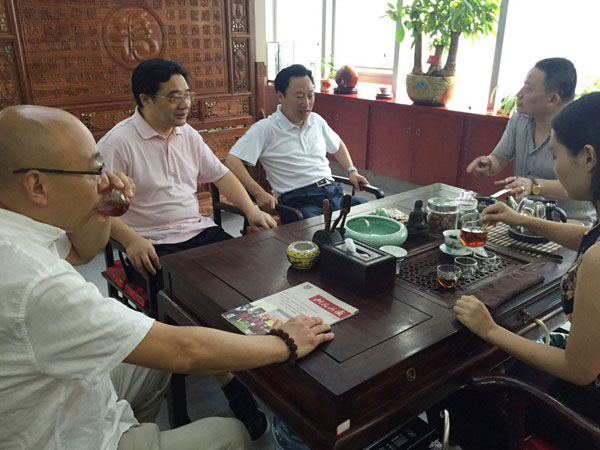 期间参观了馆内众多名家书画藏品、古玩艺术品,指导工作;并与名家典藏出品人郭建在馆内品茗小憩,在茶香寥寥间,愉快地交流艺术、经济、文化。
