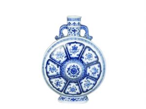 清乾隆青花八宝纹双耳宝月瓶,足底篆书“大清乾隆年制”款