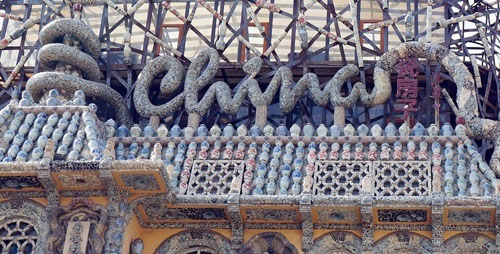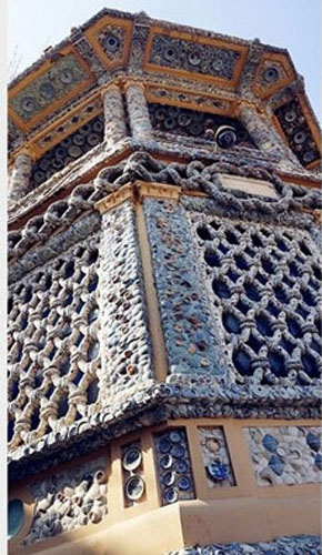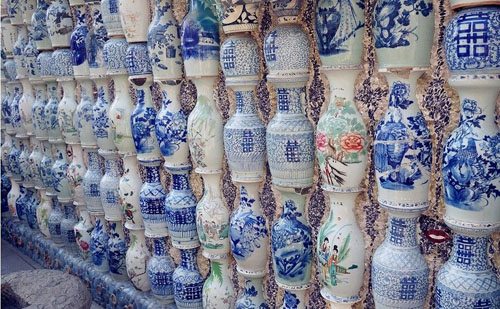 房子主人张连志被很多人视为古董狂人,瓷房子上用来装饰房子的瓷片,几乎都是张连志的收藏心血,二十多来,他的古董存货堆满了4个大仓库。图为瓷房子一角。
