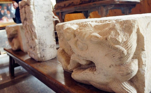 摆放在瓷房子里的汉白玉石雕,为圆明园遗物,张连志花3000多万拍得