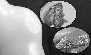 正因为如此,造假者也在这方面动起了歪脑筋。他们将山料或籽料的边角料大致滚磨后,再分别用粗砂、细砂进行喷砂打出凹坑,以求达到戈壁滩上风沙塑就的效果。尤其是用俄罗斯碧玉制成的“戈壁碧玉”,因为比和田碧玉的绿度更好,透明度也稍高,一些有着翡翠情结的消费者很自然地成了主要买家。但人工毕竟不是天工,几小时的人为打磨喷砂即使再逼真,又如何与大自然的鬼斧神工相提并论?只要从料子的外观是否自然流畅、表皮的凹凸是否太均匀且有人为打磨、喷砂的痕迹,以及戈壁滩是否有此类色泽、玉质的料子等方面综合判断,还是比较容易鉴别的。