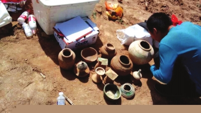 中国兰州网7月27日消息 7月25日,武威当地天气晴好。位于武威市凉州区东河乡王景寨农场附近的文物挖掘工作正在进行当中,随着文物考古工作人员小心翼翼地挖掘和整理,一枚枚古钱币,一个个土陶罐呈现在人们面前。