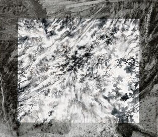 秋麦(Michael Cherney,美国,1969年生)、张洪(Arnold Chang,美国,1954年生),《边界线》(Borders),2013。喷墨印刷摄影与纸上水墨画。