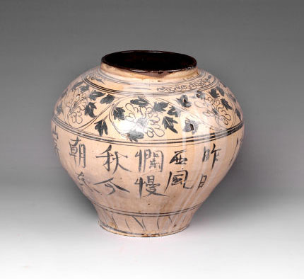 众所周知,鹤壁集窑属磁州窑系,为民窑体系,因此鹤壁集窑的瓷器以富有乡土气息与民间色彩见称。这件元代白釉褐彩题字罐本身也具有了磁州窑瓷器这种共同的特点,朴实内敛,富有民俗特色,有其“俗”文化的一面。但同时,由于鹤壁集窑瓷器中以诗词作主要画面并不多见,且诗本身具有一定的文人色彩,具备了“雅”的特征。