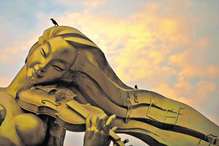 芙蓉广场上,少女的头发如浏阳河水,发上的音符如在河水里流淌,吸引鸟儿驻足,让人很容易想到浏阳河和那首歌曲《浏阳河》。
