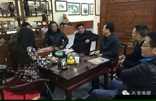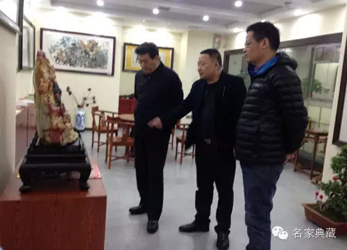 2015年3月5日上午,即农历正月十五元宵节。原湖北省副省长、省人大常委会副主任任世茂,中共湖北省委宣传部副部长、省政府新闻办主任陈连生、省委宣传部文艺处处长杜海波,武汉市政协副主席、湖北省美学学会会长彭富春教授等一行莅临名家典藏海山艺术馆和红巷公司总部指导工作并参观藏品。期间,名家典藏艺术机构出品人郭建向领导们汇报了中国·武汉第三届文玩博览会暨全国古玩城联合展销会 湖北中盛·名家典藏春季艺术品拍卖会的筹备工作。