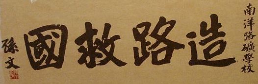 这是孙中山先生辞去大总统职位后,为南洋路矿学校的题字。当时孙中山任民国政府全国铁路督办,设想通过自己的努力,能把中国建设成为像美国一样的西方国家,据说他任职期间提出了要建设三峡的美好愿望。可是大权旁落,理想终归要成为理想。