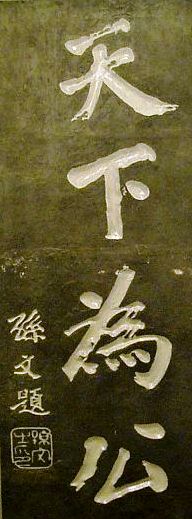 天下为公,是孙中山的政治主张,其实大同于毛泽东同志的“为人民服务”。