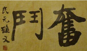 这也是民国元年(1912年)所写,他当时可能也认为革命是一个长期奋斗的过程。故写“奋斗”二字吧。