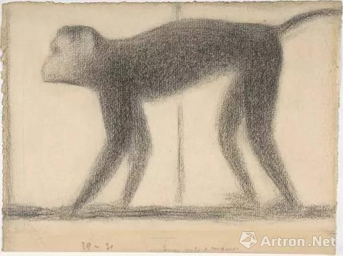 乔治·修拉《猴子》,铅笔纸本,1884年