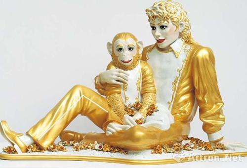 杰夫·昆斯《迈克尔·杰克逊和Bubbles》,雕塑, 2003年