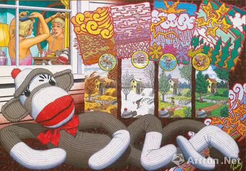 貌似我跑题到狒狒上去了,言归正传,还说猴子,美国著名漫画艺术家罗伯特·威廉姆斯画过一个用袜子做的猴子,很有意思,烈焰般的大红唇有点像大嘴猴,他用这个袜子猴子去感受四季的变化。