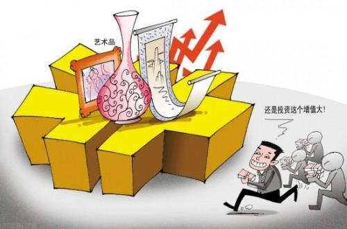 随着近几年先富起来的人群的扩大,精神生活日益丰富, 文化品位不断提高,以及其它领域的资金流向艺术品市场,使这种风气日渐浓厚,随之艺术品的价值也在不断的提高,而且成为了一种新的投资热潮。为什么那么多 的人开始把目光投向艺术投资呢?最重要的一方面就是人们看到了它的增值率,比股票、房地产更不具有风险性,其公认价值如同黄金,没有地域性,而且能提高个 人的文化修养、身份地位,增加企业的知名度,并树立良好的形象。