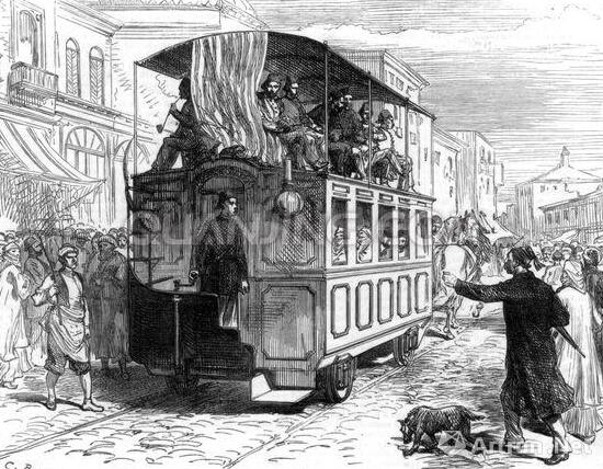 公共马车在十九世纪末期出现于伦敦街头。这是一种由几匹马共同拉动的大型厢式马车,车厢里有一条过道,过道两边是成排的座位,可以同时乘坐二三十个人。公共马车有司机,有售票员,有固定的停靠站,价格低廉,方便快捷,它是后来公交车的前身。在维多利亚时代,公共马车叫作Ominibus,现在英语里管公交车叫Bus就是从这个词演变过来的。这种马车迅速大受欢迎,同时,华丽的装饰和漂亮马儿的搭配也成为欧洲皇室酷爱的身份象征。1831年,这种公共马车被引入到纽约,运营数量在1835年超过100辆。费城、波士顿和巴尔的摩分别在1831年、1835年和1844年引入了类似服务。