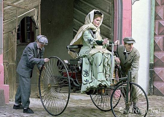 本茨的妻子贝瑞塔.格林正在试验本茨发明的汽车