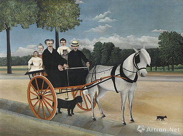 卢梭《年轻爸爸的马车》 画布,油彩 ;纵97厘米,横129厘米;作于 1908 年;藏于法国巴黎橘园博物馆