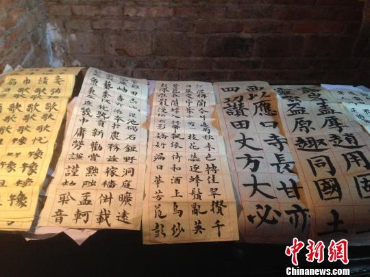 现时正是湘南春忙时节。28日,忙完农活的李艳红又开始练字。走进她的“书房”,昏暗的房间正中是一张方桌,桌上摆放的是文房四宝。练字的毛笔秃了一半,砚台是一个缺口的碗。用于练字的废报纸则是乡里和学校送的。