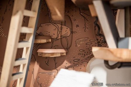 最有趣的是这些建筑的地下部分也被“刻画”出来,仿佛城市下面存在着的另一个城市,有管道、有结构、有楼梯甚至还有房子。