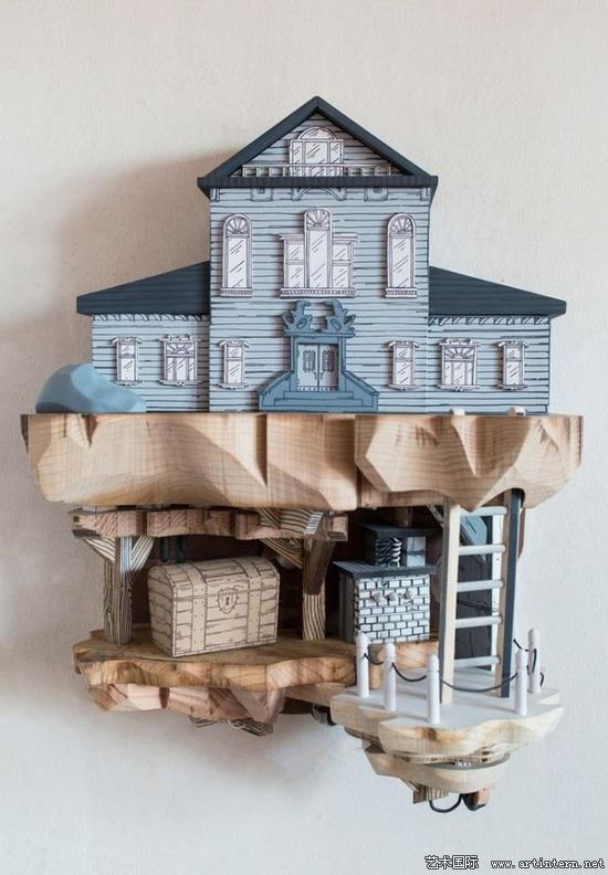 艺术家将绘画与雕刻结合,造出反乌托邦的微缩模型