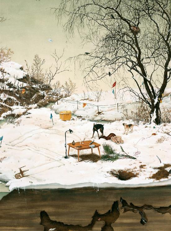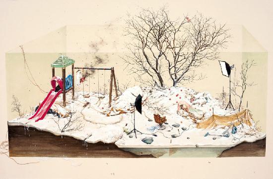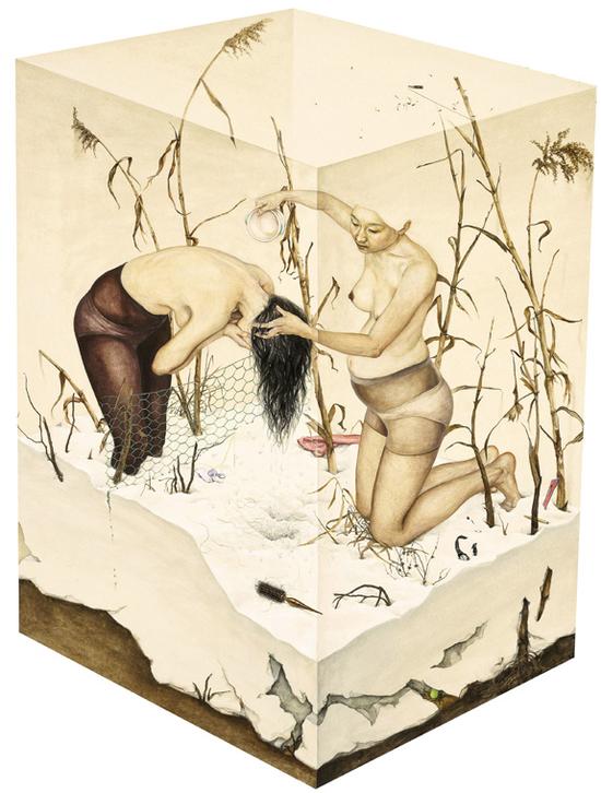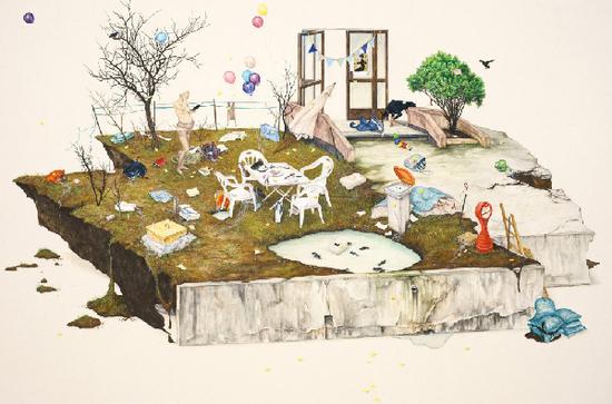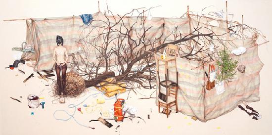 “其实我并没真正感觉到自己成功了,只是一步一个脚印的去做好艺术家分内的事。之前我的作品大多数以绘画形式出现。现在我也在尝试一些新的表现方式和技法,除了二维的作品,我在作品中还尝试了接近雕塑的元素(雕塑绘画),把画框装置成画面内容。除了这些,我也更多的运用展览的空间,尝试表现更多装置的效果。由于我的绘画主题是来自于回忆的,我也更希望在单个画面中去表达时间的同时性,进而开始尝试做一些表达画面暂时性的影像作品。”在采访的最后,珍珠说一直希望自己能够保持一种勇敢的态度,她说:“找寻更多的生活方式,能够让自己远离恐惧。要勇敢的尝试,不要惧怕什么。我自己是这样,希望所有热爱艺术的人也都能做到。”
