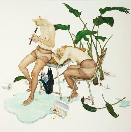 我们对珍珠作品的关注,来自画面中所描绘的日常生活,回忆,思绪和她内在心理所表述的那个当下的情景图像。在她的画作中,出现的很多尴尬情景,都是我们真实生活的写照。画面内容可以是完全不相干的。就拿一个茶杯或一个瓶子来说,每个人都会有不同的解读。以一杯果汁为例,它可以勾起你与某人在某天的回忆。那天你所谈论的故事是会带出一段完全不一样的回忆。“这些画面和回忆看起来似乎毫不相干但他们其实被牢系在一起,因此我对知觉的构造很感兴趣。这些作品包含我的个人故事,当它们被放置在同一个画面中,这个画面就创造了一种不舒适的却特殊的细微心理场景,我想这就是我的作品要表现的。”珍珠说。