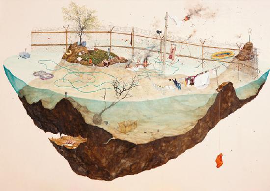 出生在韩国釜山的艺术家李珍珠(Jinju Lee) ,硕士学位毕业于弘益大学的东方绘画系(Hongik University Department of Oriental Painting)。她在作品中描绘的是由于苦难的回忆和情感,悲痛和消极所交织,而导致的一种虚幻的心理感知。她运用传统的韩国绘画媒介,通过自己一系列迥然不同并不断重复的图像,打造了一个孤立主义者的内心世界。她的作品可以看作是对人类认知的一种解释,现实中意识与无意识并存的神秘,平日的忧郁转化出的从与众不同与陈腐,是及其个人化的记忆,梦想与思维赖以生存的温床。