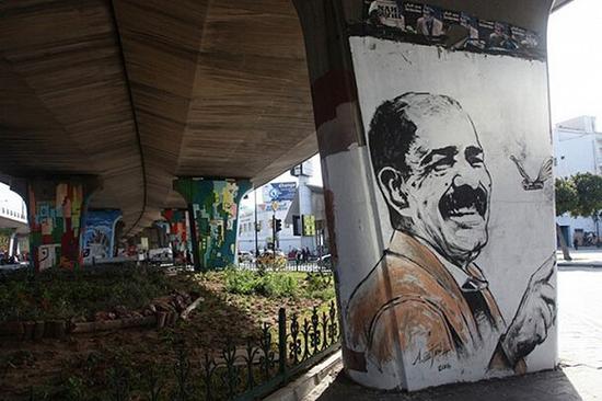 这幅肖像画的是一位在2013年被杀的突尼斯左翼政治家。 图片来源:Thessa Lageman