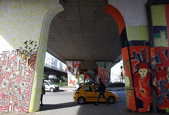 街头艺术在这个位于非洲北部的国家中还是一个新鲜事物, 但是在过去的几年时间里,这里出现了越来越多的涂鸦作品和书法涂鸦——这是一种将伊斯兰书法同涂鸦结合起来的艺术,其他形式的艺术作品也开始出现在这里的 咖啡厅和学校的墙壁上,以及街道的旁边,甚至在清真寺的圆屋顶上也能寻觅到它们的踪迹。年轻的街头艺术家们的目的是装点城市的郊区,同时传递一种信息。