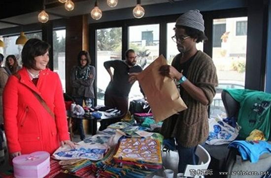 VIJO在拉马尔萨的城郊出售自己设计的包和T恤。 图片来源:Thessa Lageman