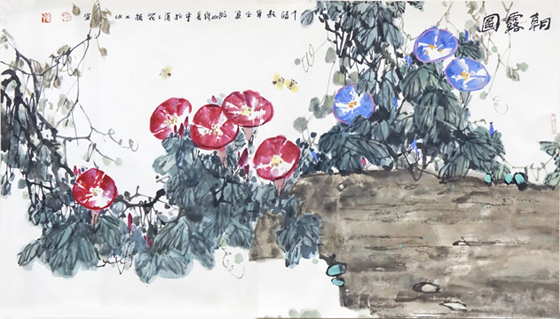 张善平 国画《朝露图》 尺寸:116*66cm