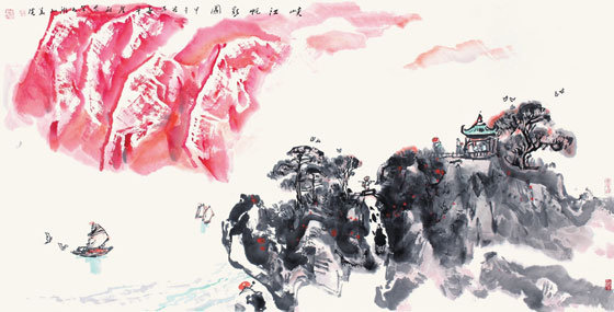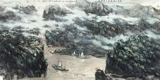 张善平与邵声朗合作国画《峡江帆影图》